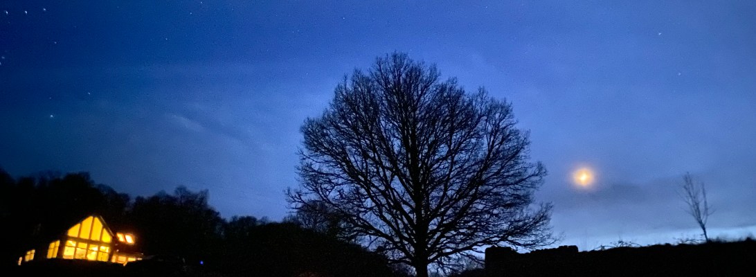 Less light however rarely means total darkness. The northern lights called us out just before the new moon, a faint green wash that could almost be imagined flickering above the hills. We switched off the house lights in an attempt to see them better, blending the garden and ourselves back into the night.