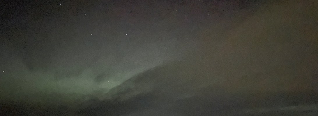 A quick snap with my phone camera would confirm the sight of those skybound dancers straight away, but just one glance at the phone screen would reset  my eyes back to their default daylight settings. So instead we wait for the shifting green light to brighten, and for the stars that were there all along to emerge.